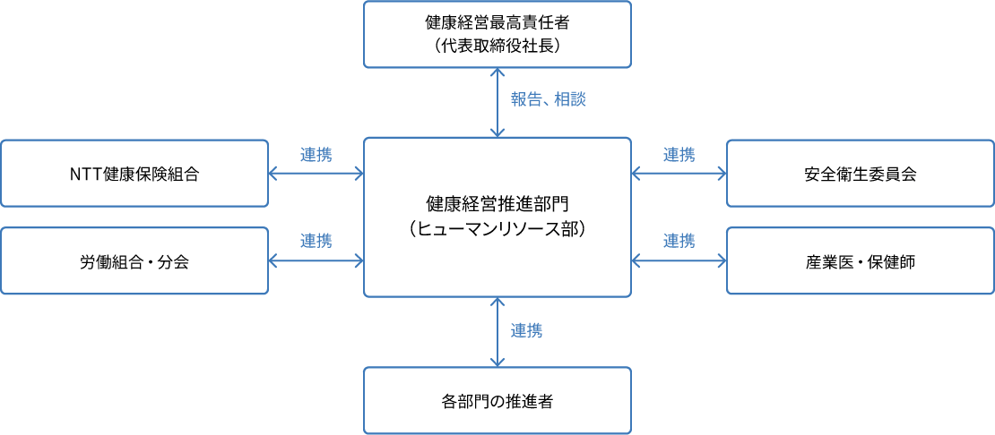 私たちの会社は、社員の健康を何よりも大切な財産と考えます。社員および当社で働く全員が、心身ともに健康で、活き活きと働くことができる環境を整えることが、プロフェッショナルとしての成長、創造性の発揮、生産性の向上、そして顧客への価値提供へとつながります。