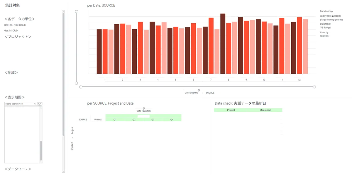 松野氏:私は、既存プロジェクトの予実管理で、便利さや効果を実感しています。予実管理の際は、油やガスの生産量やコストの予測と実績を比較する作業を行います。予測は参入時、四半期見直し……とタイミングごとに増えていきますが、Spotfireでデータを蓄積しておけば、必要な比較を容易に表示できるんですよね。データが増えすぎて管理が煩雑になることもありませんし、Excelで手戻りを重ねながらデータを集める必要もなく、助かっています。