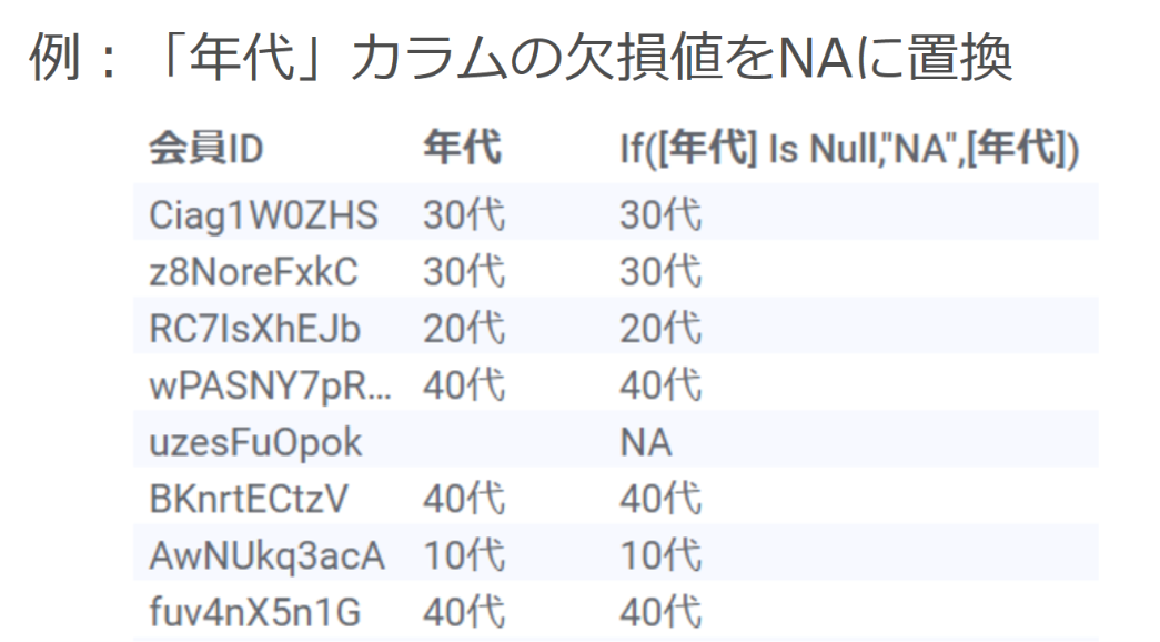| 欠損値の補完 | Is Null | 値が欠損値かどうかを判断 |