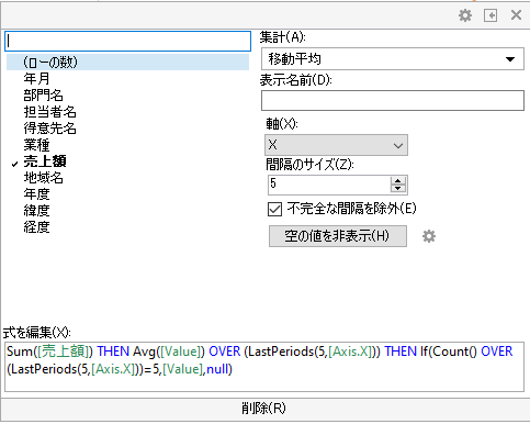 売上額を選択し、「集計」項目で「移動平均」を選択します。