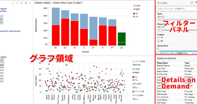 フィルターパネルを用いたフィルタリングの方法と、Details on Demand機能について説明します。