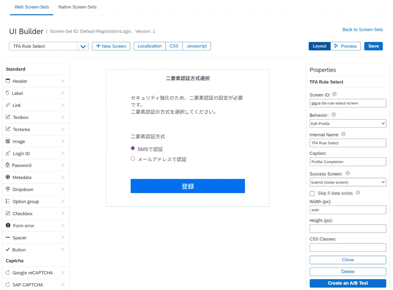 2.RegsirationLoginのScreen-Set内にTFA方式選択画面用のScreenを作成
