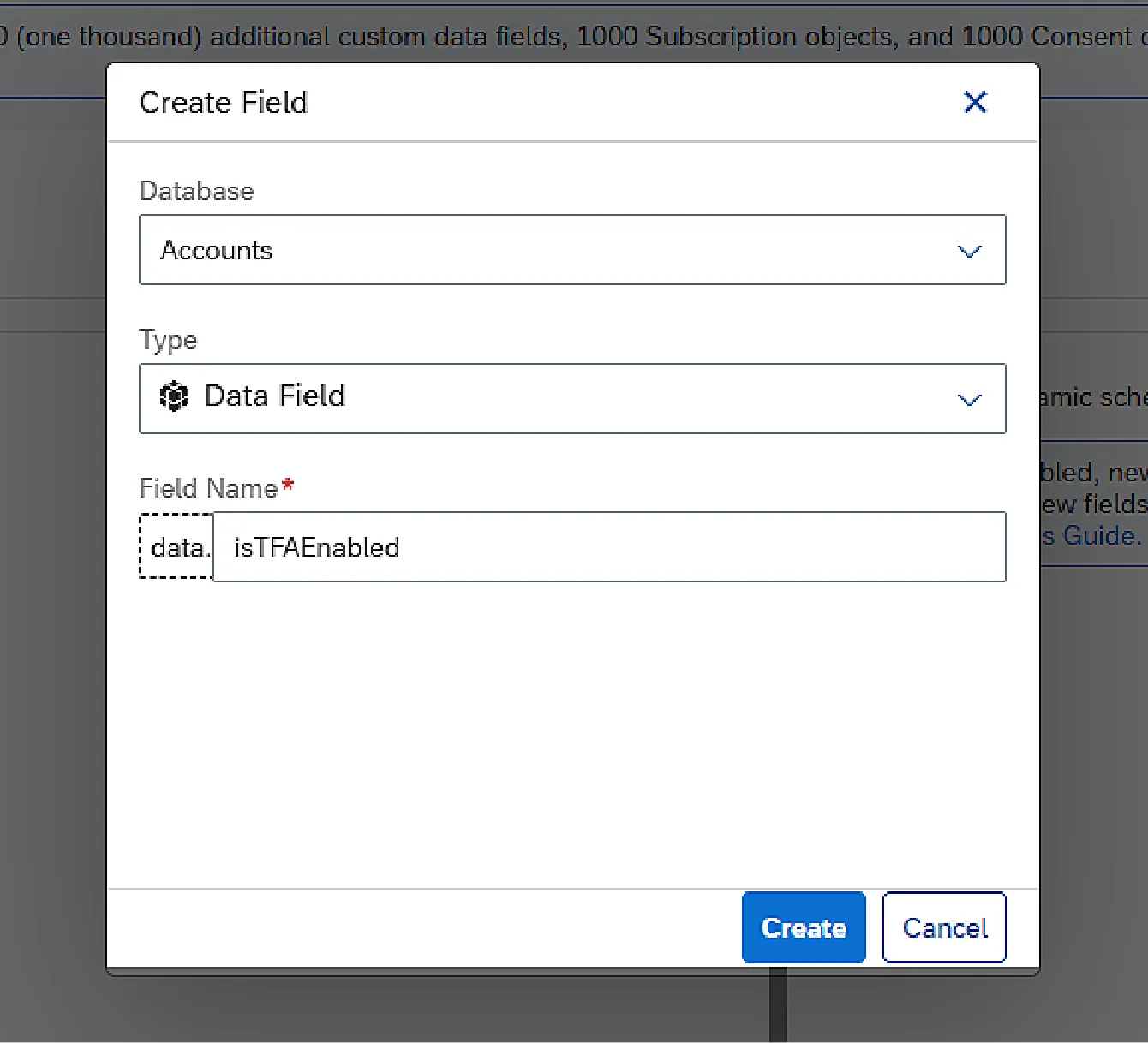 ※ SAP CIAMのアカウントデータベース - この必須Schemaがユーザ情報として登録されていない場合にはTFA方式選択画面を表示するように設定する