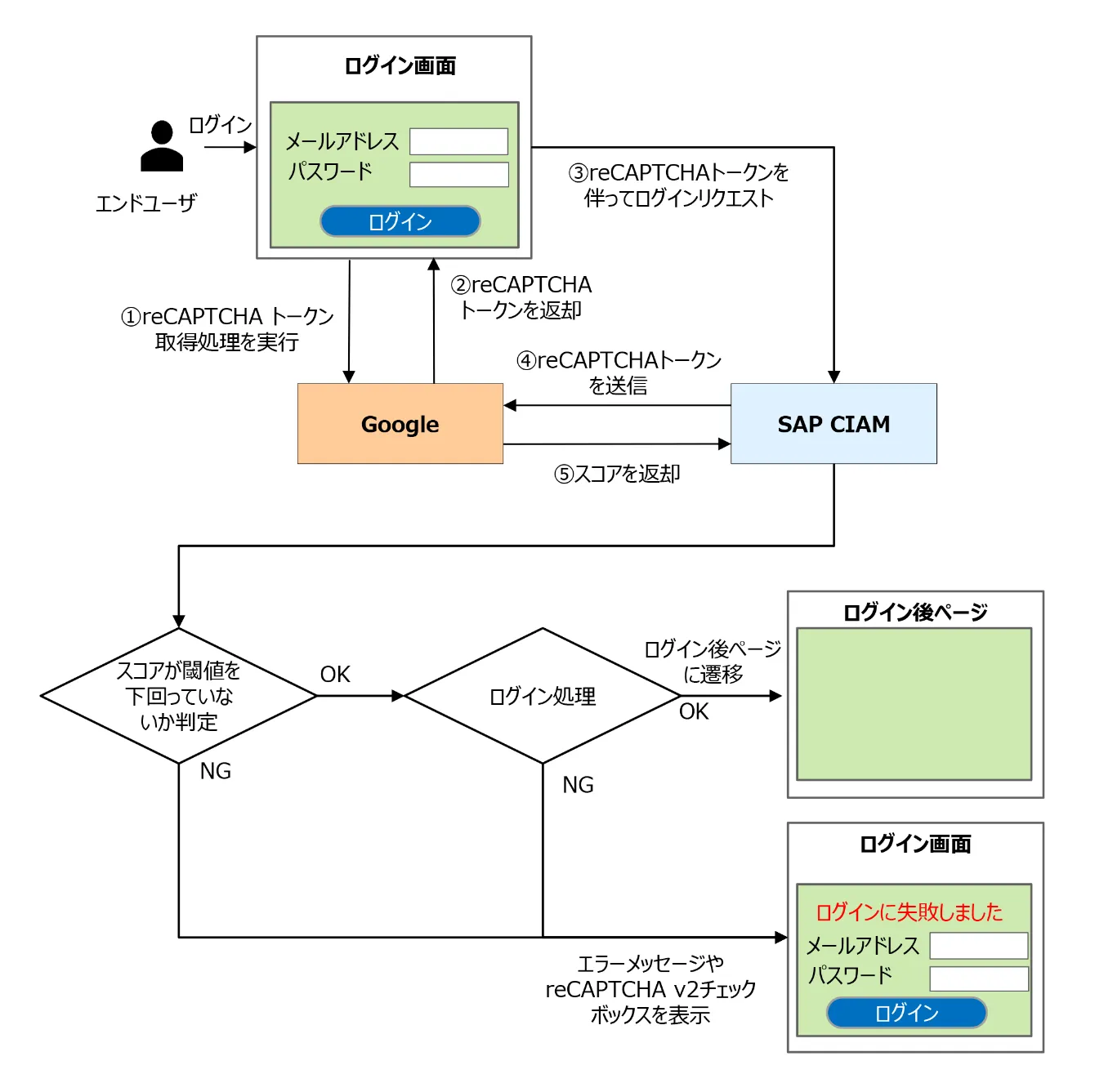 図1. Google reCAPTCHA EnterpriseとSAP CIAMの統合