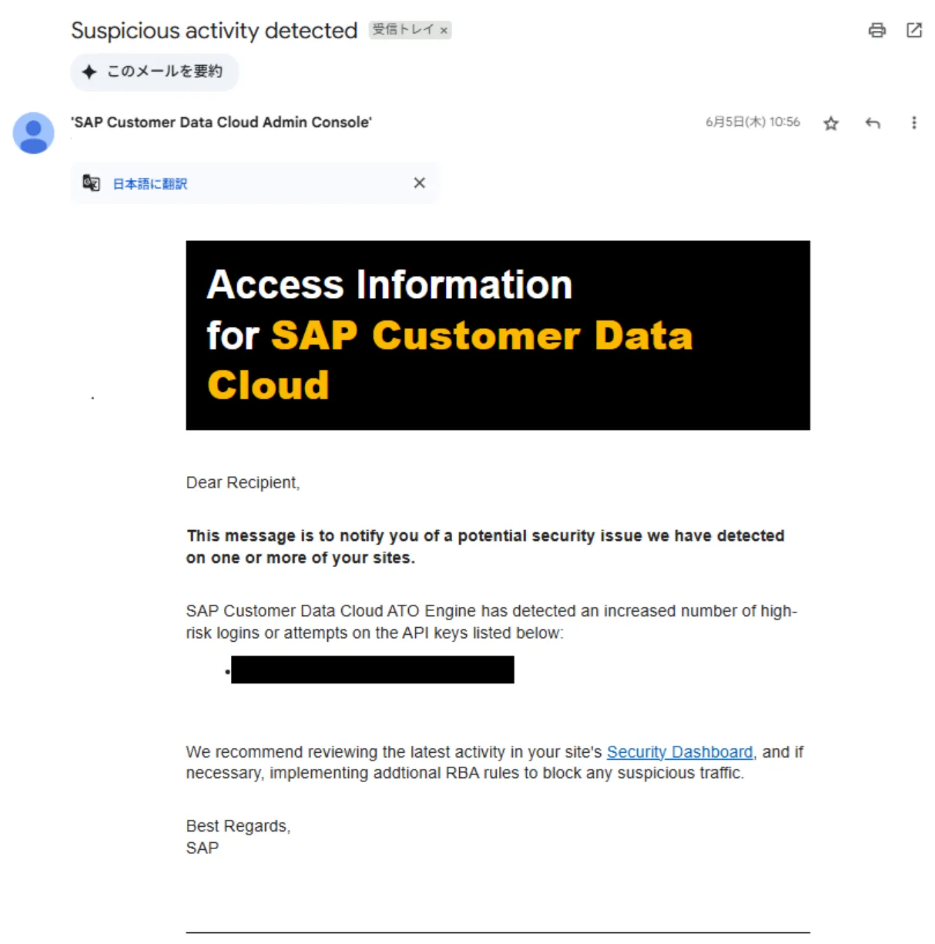 図2. SAP CIAMから送信されるセキュリティアラートメールの例