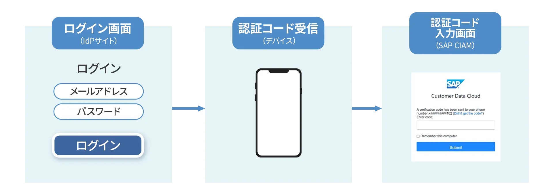 - SAP CIAMの管理コンソールのログイン画面にて、②で受信したコードを入力後ログイン完了