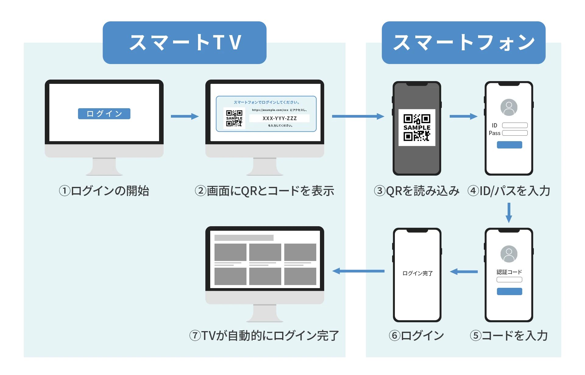 より具体的にイメージできるよう、スマートTVでのログインを例にユーザフローを説明します。