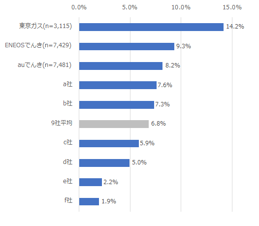 分析対象企業(アルファベット順、50音順):auでんき、ENEOSでんき、J:COMでんき、Looopでんき、大阪ガス、ソフトバンクでんき、東京ガス、東邦ガス、楽天でんき
