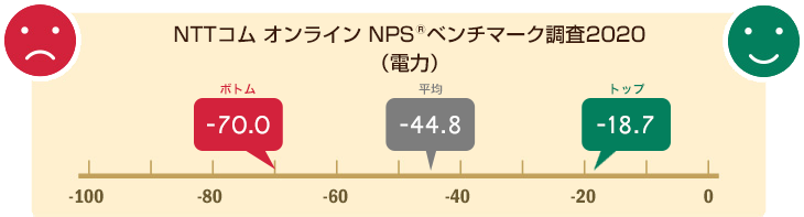 ※NPSのベンチマーク調査を通じて、契約者が、知人や友人に該当の電力会社を「どのくらいおすすめしたいか」が分かります。