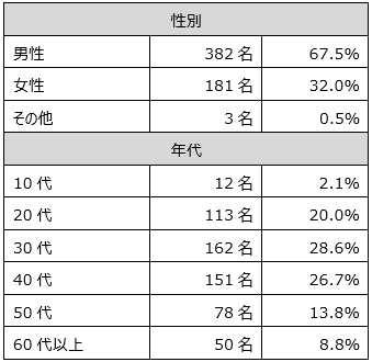 有効回答者数 | 566名(スクリーニング調査:20,644名) |
